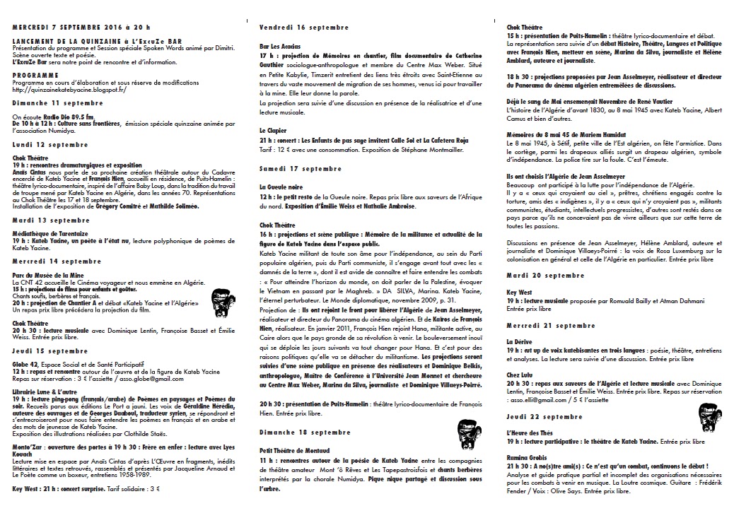 septembre 2016, dans le cadre de la Quinzaine Kateb Yacine, une deuxième